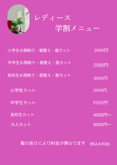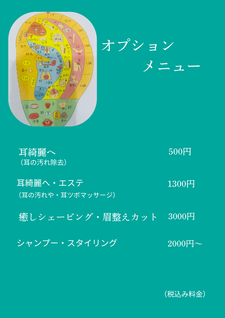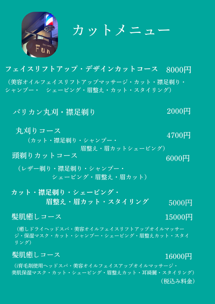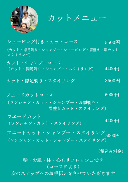 お子様から大人の方のカット・女性の方にはお顔剃りエステ・元気になるヘッドスパも提供して